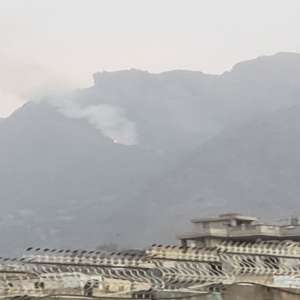 اندلاع حريق في جبل صبر وتصاعد كثيف لأعمدة الدخان."