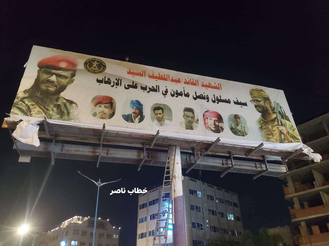 استعاد ناشطون بالانتقالي لافتة بشارع التسعين ليل اليوم