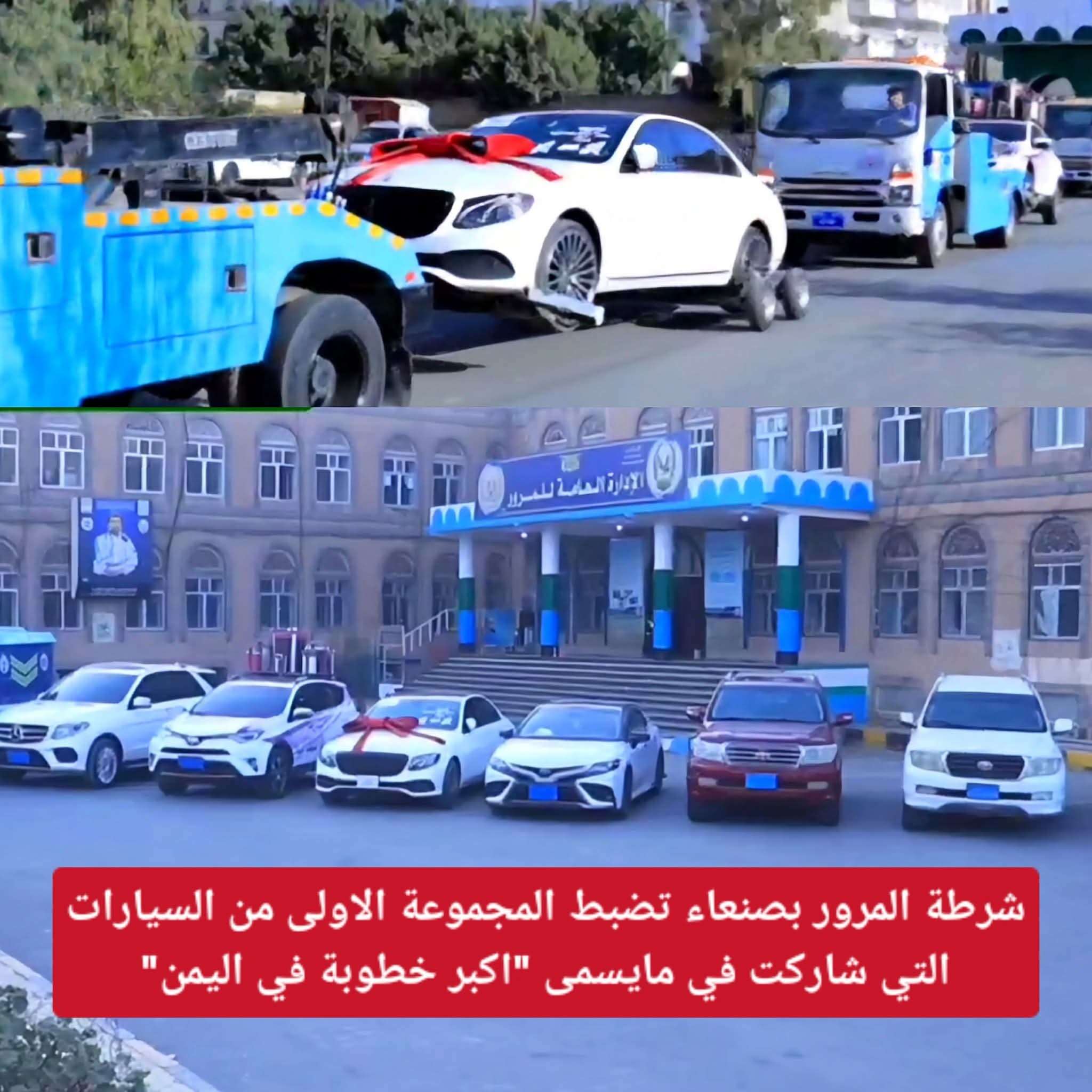 اعلنت شرطة المرور بالعاصمة صنعاء عن تمكنها من ضبط المجموعة الأولى من السيارات المخالفة التي ارتكبت تجاوزات قانونية جسيمة يوم أمس بحجة إقامة مناسبة تحت مسمى "أكبر خطوبة في اليمن" أدت إلى إحداث شلل مروري في شارع 14 أكتوبر، والعشاش وعرقلة المهام الأمنية والإنسانية الطارئة.