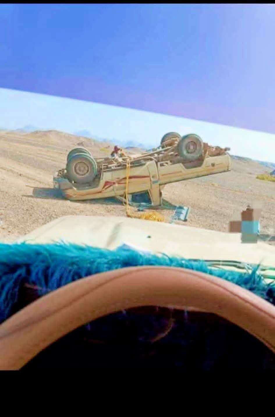 وبحسب مصادر فقد انقلبت المركبة على جانب الطريق في منطقة رملية.