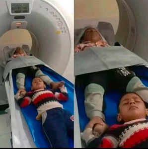 تمكّن طاقم طبي في أحد المستشفيات من إجراء فحص أشعة مقطعية لطفل كان يرفض دخول غرفة التصوير بمفرده بسبب الخوف من الجهاز، رغم محاولات استمرت لساعتين إلى ثلاث ساعات من قبل والديه والأطباء لإقناعه بالخضوع للفحص.