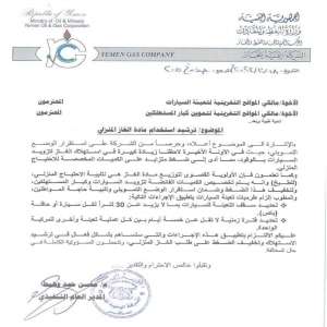 أصدرت الشركة اليمنية للغاز (صافر) تعميماً جديداً يقضي بتنظيم عملية صرف مادة الغاز وتحديد حصص معينة...