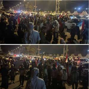 وبحسب مواطنون فان متظاهرين الانتقالي حاولوا اقتحام اول بوابة لقصر معاشيق حيث قامت الحراسات بصدهم واطلاق النار لتفريقهم