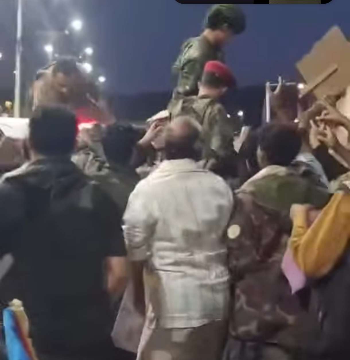 أظهر مقطع فيديو جرى تداوله مساء اليوم، قيام عدد من الجنود في ساحة العروض بمديرية خور مكسر بتوزيع صور عيدروس الزبيدي، رئيس المجلس الانتقالي الجنوبي، على المواطنين.