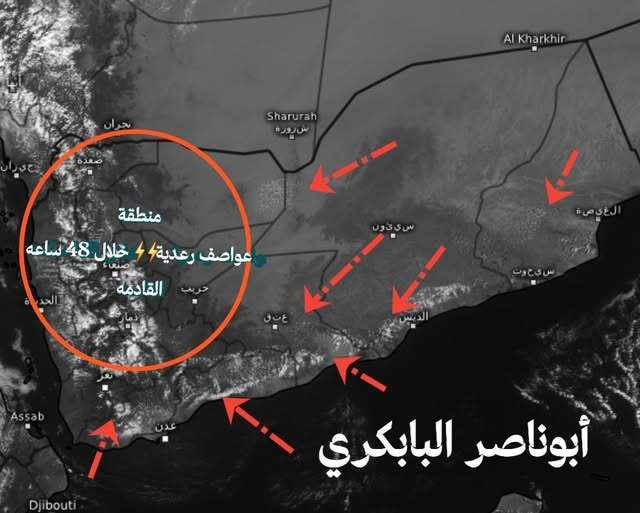 ويتوقع خلال الـ 48 ساعة القادمة تشكل عواصف رعدية وهطول أمطار غزيرة تتركز قوتها في المحافظات التالية: