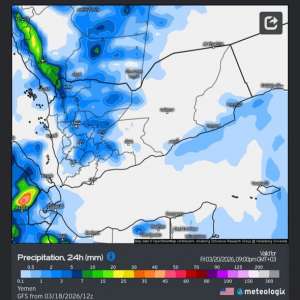 خبير أرصاد يحدد موعد ذروة المنخفض الجوي في اليمن