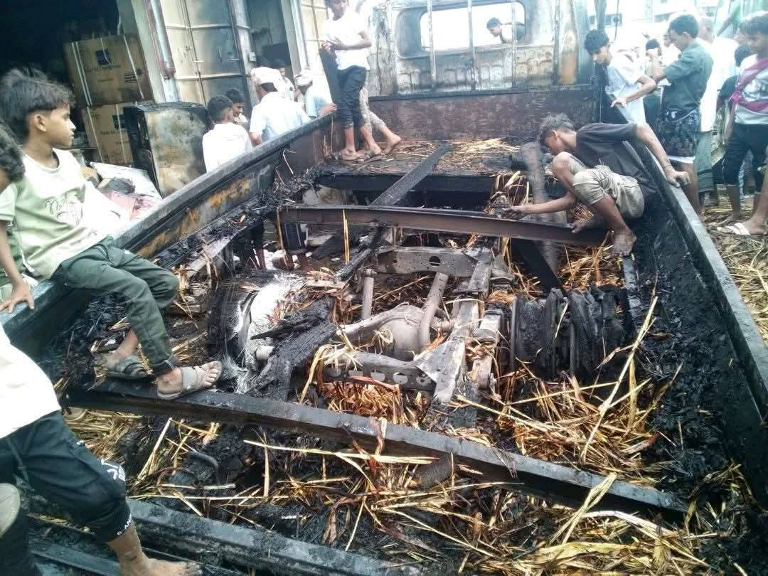 شهدت مديرية عبس بمحافظة حجة حادثة احتراق قلاب محمّل بالقصب، نتيجة استخدام الألعاب النارية، ما أدى إلى اشتعال المركبة بشكل مفاجئ.