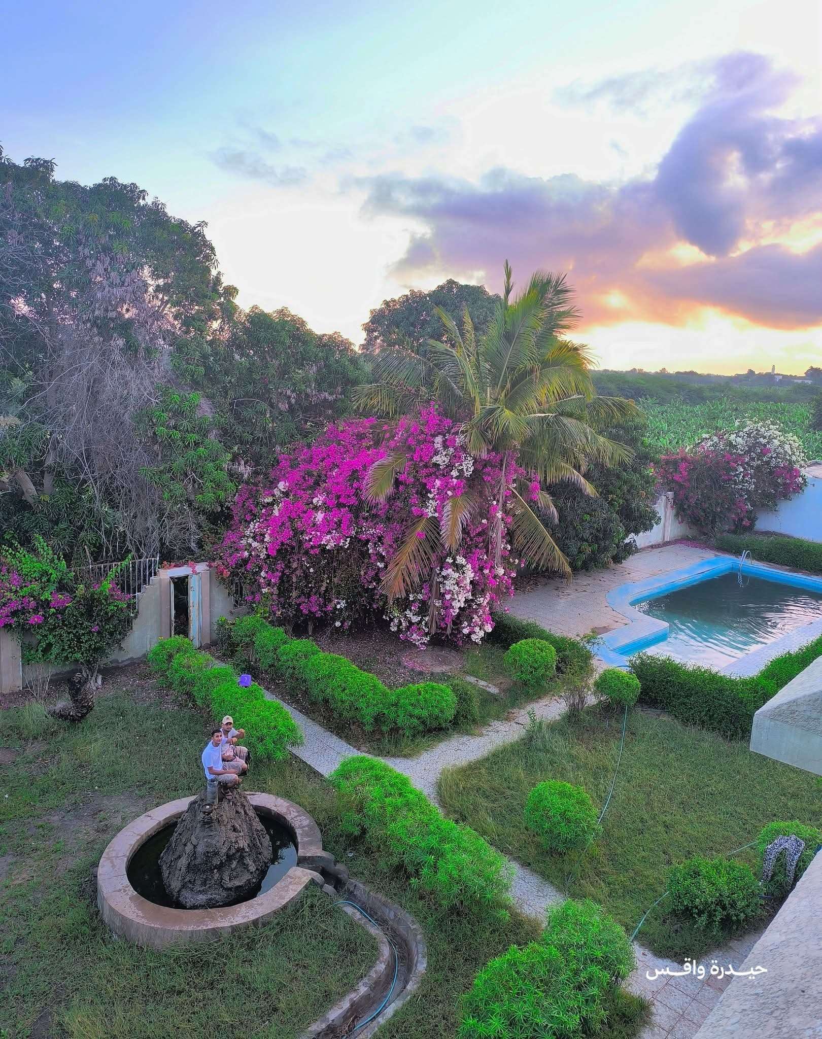 وأظهرت الصورة تناغمًا ساحرًا بين الخضرة الكثيفة وألوان الزهور الزاهية، إلى جانب مشهد الغروب الذي أضفى لمسة جمالية لافتة، عكست سحر الريف في أبين.