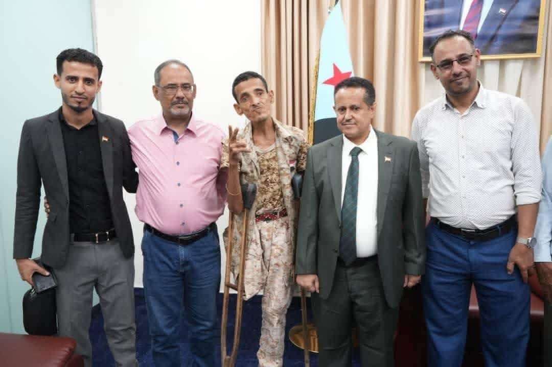 قام رئيس المجلس الانتقالي المنحل بتوجيه بتكريم جندي جريح شارك بمظاهرة سابقة بعدن