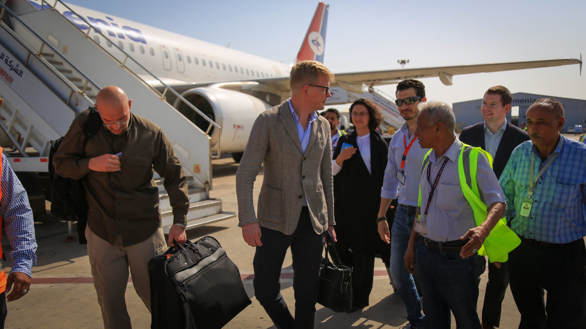 حصل محرر موقع كريتر سكاي على صورة للمبعوث الأممي هانس غروندبرغ فور وصوله إلى مطار عدن الدولي، حيث كان في استقباله عدد من المسؤولين المحليين وممثلي وزارة الخارجية.