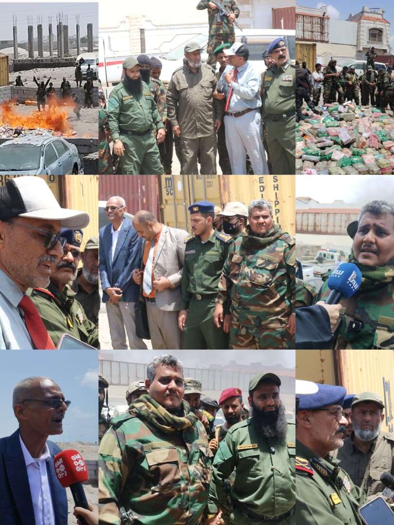 الأجهزة الأمنية تخوض حرباحاسمة لاجتثاث آفة المخدرات وحماية مستقبل الشباب ،أتلفت النيابة الجزائية المتخصصة، اليوم الثلاثاء 14/4/2026 كميات كبيرة من المخدرات، في مواجهة قوية تقودها الأجهزة الأمنية المشتركة ، بقيادة العميد /حمدي شكري، قائد قوات العمالقة، في سواحل مديرية المضاربة ورأس العارة القريبة من باب المندب، بمحافظة لحج. وتمت عملية إتلاف المخدرات بإحراق ( 1213 )كيلو من مادة الشبو و الحشيش، و الهروين والكبتاجون بمقر النيابة الجزائية المتخصصة بالعاصمة عدن.