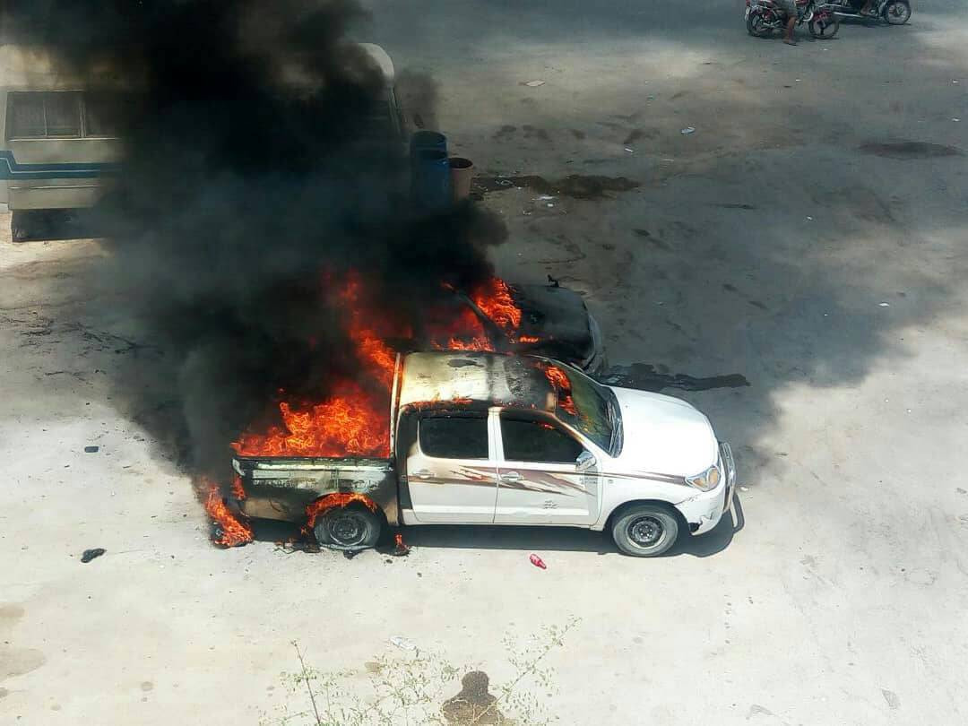 التهم ظهر اليوم حريق ضخم سيارتين تقوم ببيع الوقود في السوق السوداء بتريم حضرموت .