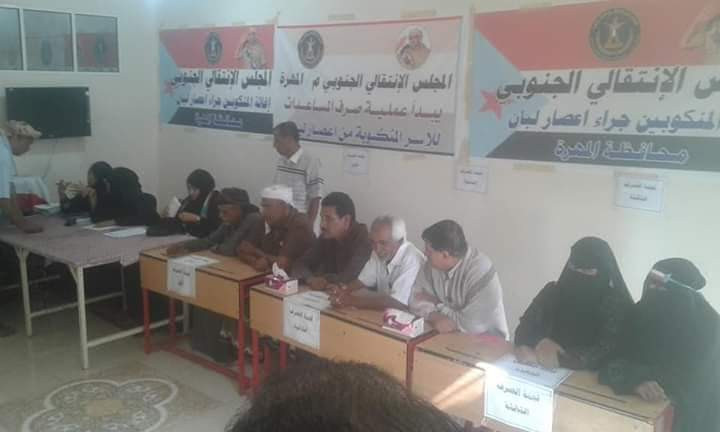 دشنت صباح يوم السبت في مقر المجلس الانتقالي بالمهرة اللجنة المكلفة من هئيات رئاسة المجلس الانتقالي بالجنوب و بحضور قائم بأعمال الهيئة التنفيذية للمجلس الانتقالي بالمهرة الأستاذ حسان مهدي والشخصيات الاجتماعية بالغيضة تبداء بعملية الصرف المستحقات المالية للمواطنين الدي تضرروا من العاصفة المدارية لبان والتي ضرب عدة مديريات بمحافظة المهرة وتم تكليف لجنة مسح للمناطق أشد تضررآ والتي سيتم دفع لهم مبالغ مالية حسب تصنيف الفئات الدي تم اتخاذها من قبل اللجنه وهي الفئة أ والفئة ب والفئة ج