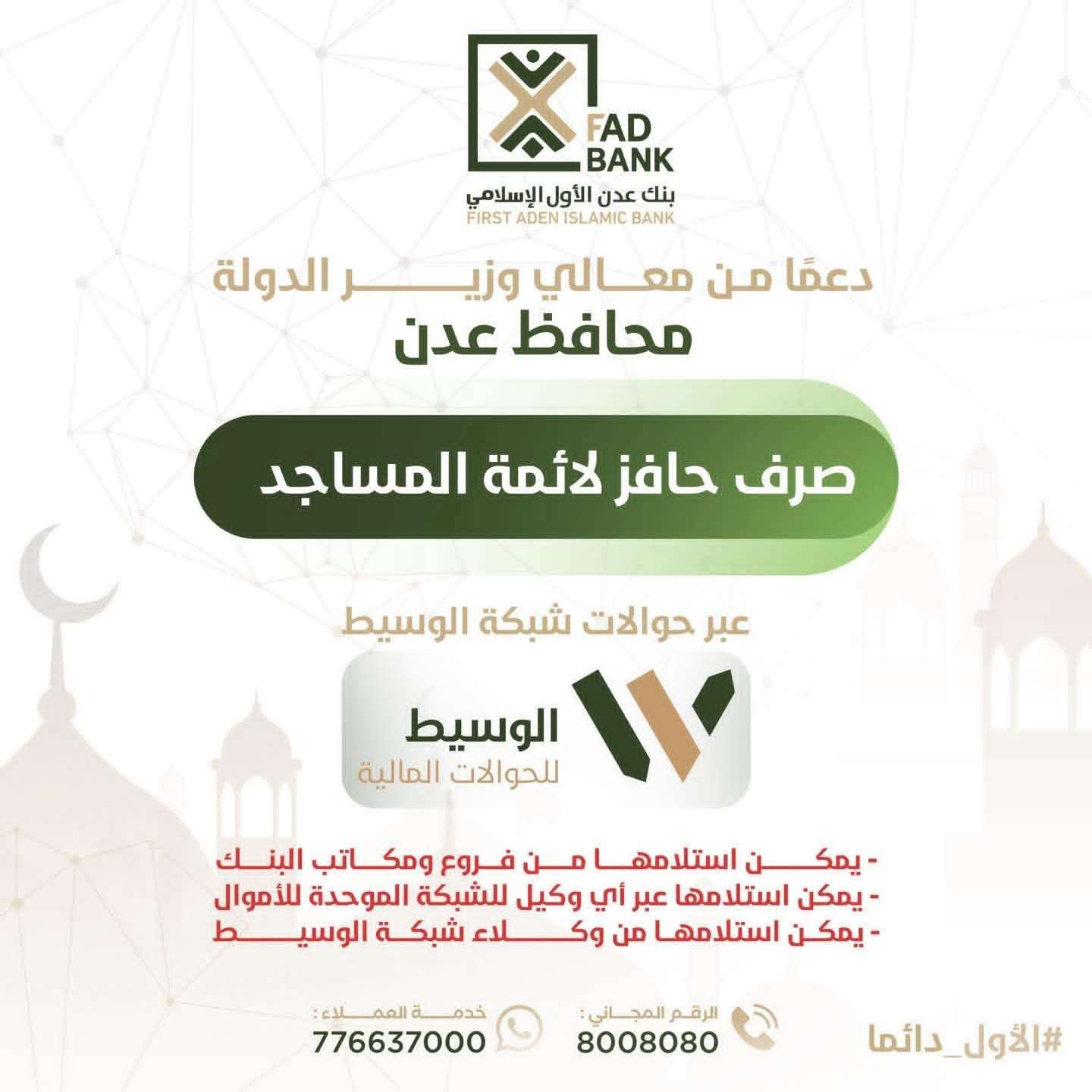 بدء صرف حافز أئمة المساجد في عدن عبر هذا البنك