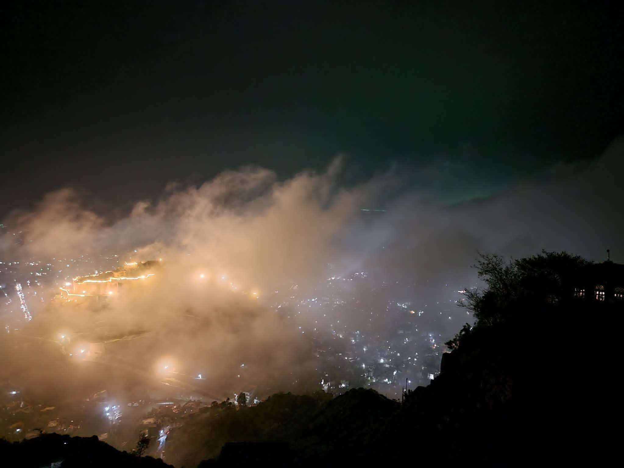 أجواء ضبابية تكسو تعز مساء اليوم (صورة)