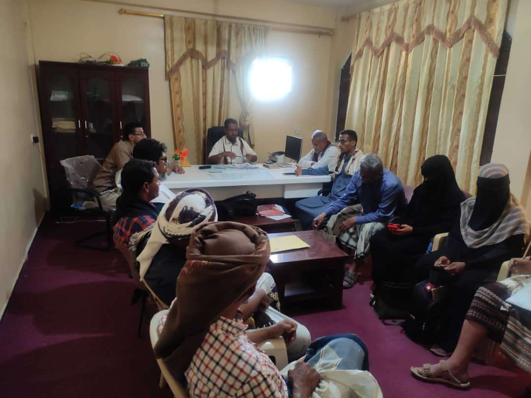 التقى المحامي الاستاذ مازن بالليل اليوسفي مدير عام مديرية خنفر رئيس المجلس المحلي في المديرية يوم الخميس 7إبريل 2022م في مكتبه بمدينة جعار مع منظمة الاغذية والزراعة الفاو ممثلة بالمنسق سامح مقشع وبحضور تسع جمعيات من جمعيات مستخدمي المياه في مديرية خنفر وبحضور عبدالله طبيق مدير عام الري أبين وياسر الحسني مدير الزراعة خنفر وعادل زيادة مدير التخطيط خنفر وابوبكر صالح عمر مدير الإرشاد الزراعي ابين ويهدف الإجتماع إلى تدشين العمل في مشاريع الفاو في مجال النقد العمل مقابل العمل في المرحلة الأولى والذي يهدف إلى تفعيل جمعيات مستخدمي المياه في أعمال جابيونية وتنظيف قنوات الري في المديرية.