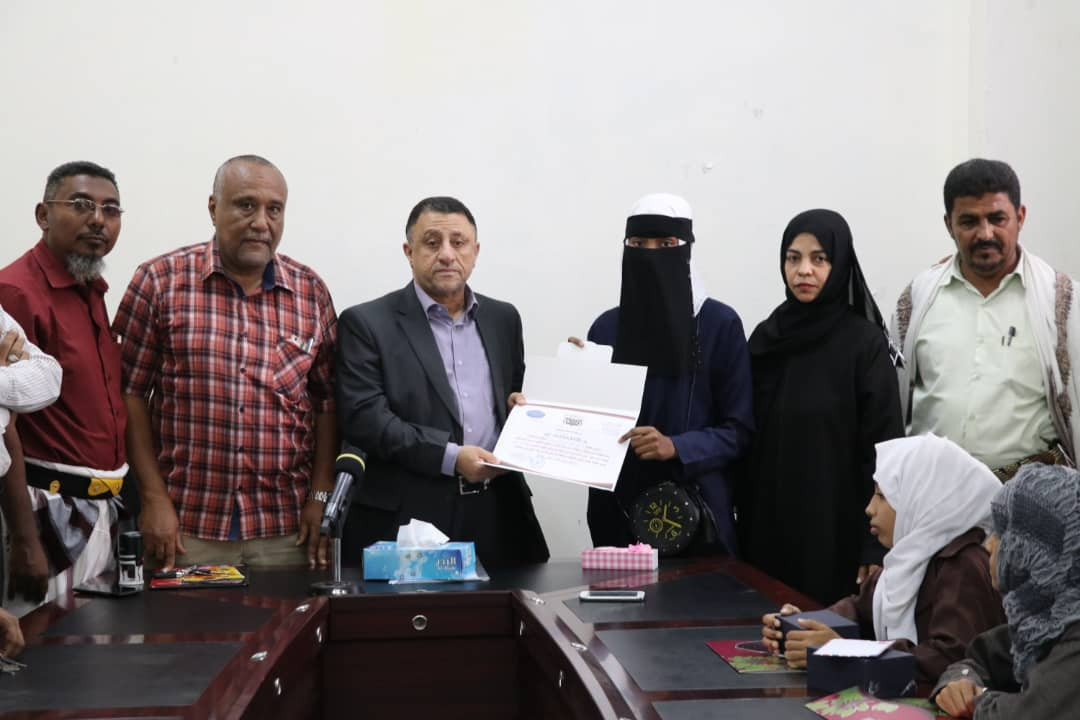 بعد ذلك قام نائب المحافظ والمسؤولين بتكريم الطالبات الفائزات بالمسابقة بالشهادات التقديرية والهدايا الرمزية والمبالغ المالية ..