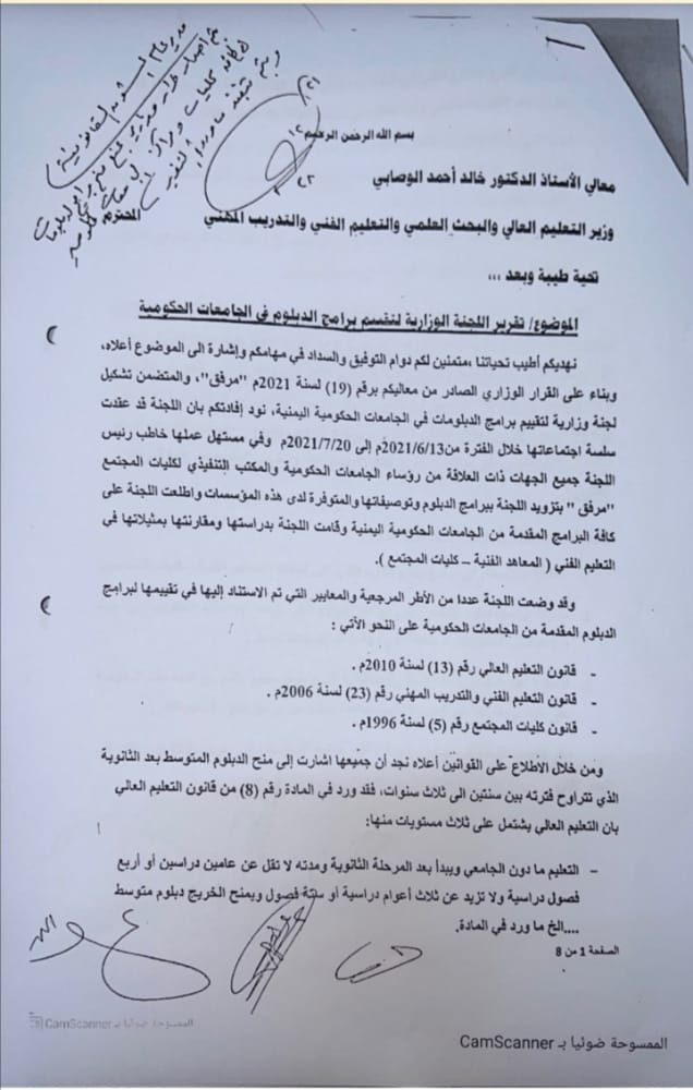 نشرت وزارة التعليك العالي تقرير اللجنة الوزارية المكلفة بدراسة برامج الدبلومات في الجامعات الحكومية كالتالي:
