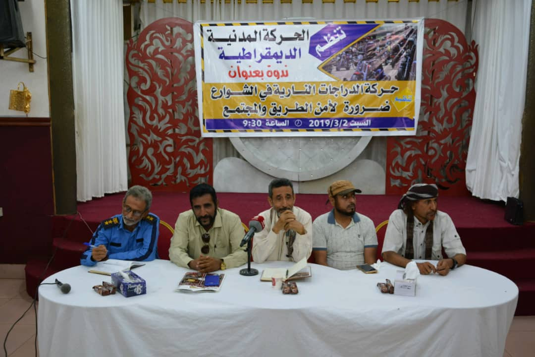 نظمت الحركة المدنية الديمقراطية في العاصمة المؤقتة عدن صباح اليوم السبت ندوة بعنوان حركة الدرجات النارية في الشوارع ضرورة لأمن الطريق والمجتمع .