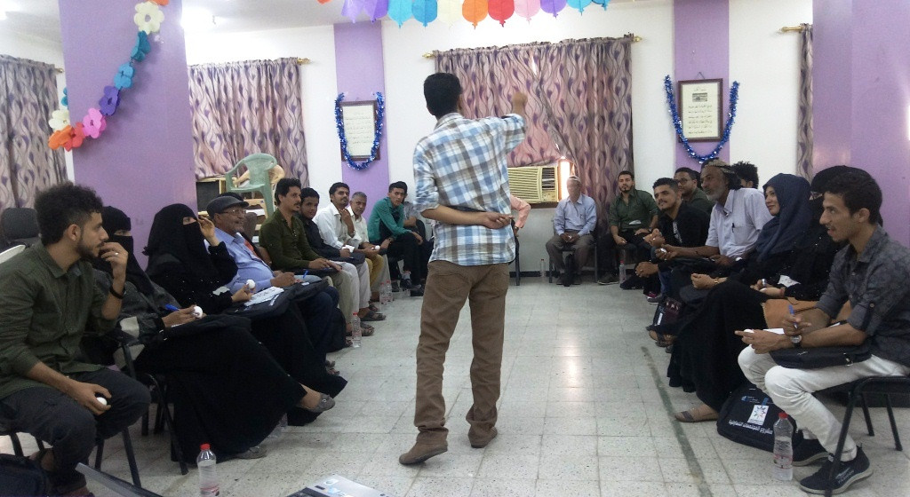 دشنت منظمة "البحث عن أرضية مشتركة" SFCG – مكتب اليمن، بالشراكة مع مؤسسة "أكون" To Be للحقوق والحريات، صباح اليوم في مديرية المنصورة، فعاليات الورشة التدريبية الخاصة بالوسطاء المحليين، ضمن مشروع "المجتمعات التعاونية .. النهوض بالحكم المحلي"، الممول من المملكة الهولندية.