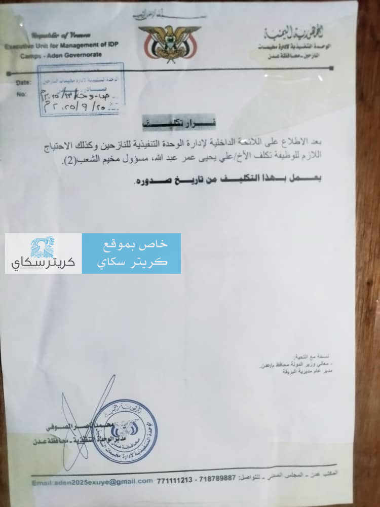 وطالب ناشطون الجهات الرسمية، وفي مقدمتها رئيس الوزراء ومحافظ عدن، بالتدخل العاجل لوضع حد لمعاناة النازحين، والتحقيق في الشكاوى المطروحة، وضمان حماية حقوقهم وتحسين أوضاعهم المعيشية.