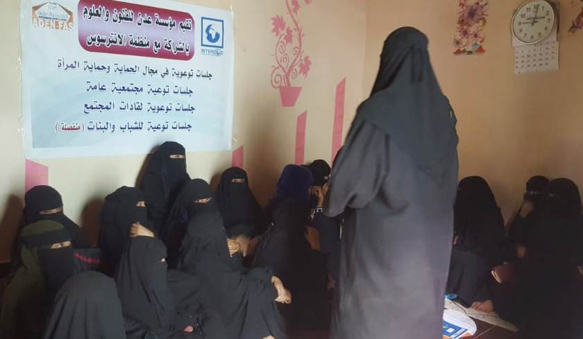 تنفذ مؤسسة عدن للعلوم والفنون، بالشراكة مع منظمة انترسوس INTERSOS الدولية، في مديرية دار سعد في محافظة عدن، سلسلة من الجلسات التوعوية، خاصة بحماية المرأة من العنف.