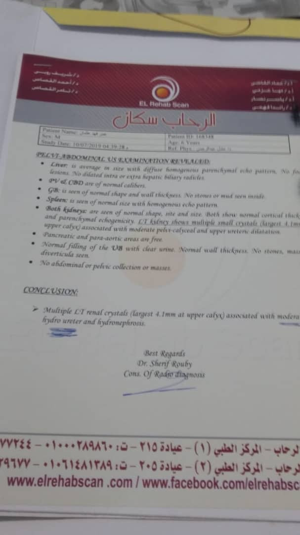 وأوضح المواطن في مناشدته الإنسانية أن طفله لم يعد يتحمل الآلم وعبر أصحاب الخير سافر به إلى جمهورية مصر لإجراء الفحوصات, حيث طلب منه الأطباء إجراء عملية جراحية عاجلة لإستصال الورم وفتح انسداد مجرى البول.