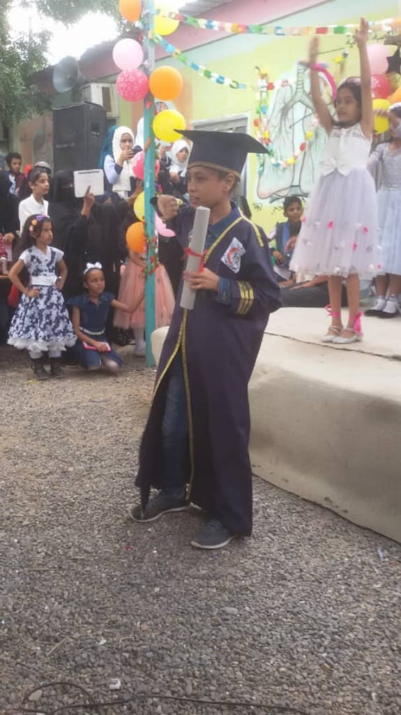 وقبل توزيع الجوائز والشهادات وإعلان اختتام الحفل، قدم طلاب مدارس النبلاء الأهلية بعدن، "اسكتش" مسرحي باللغة الانجليزية.