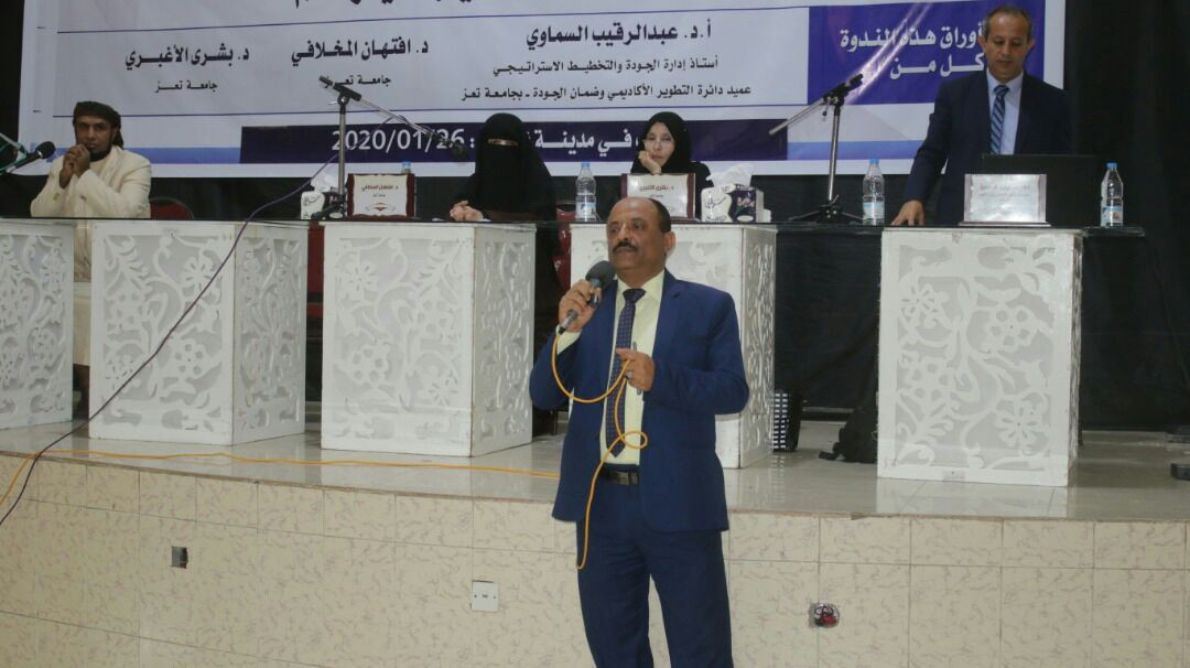 بدوره الاستاذ عبدالعزيز سلطان نقيب المعلمين قدم مداخلة بدأها بكلمات الشكر لحزب السلم والتنميه فرع تعز على تبنيه مثل هذه المواضيع ذات الصلة بالعملية التعليمية موضحا بأن التميز اصبح مرتبط بإتباع اساليب تربويه حديثه يكون للطالب دور اساسي ومحوري في العملية التعليميه
