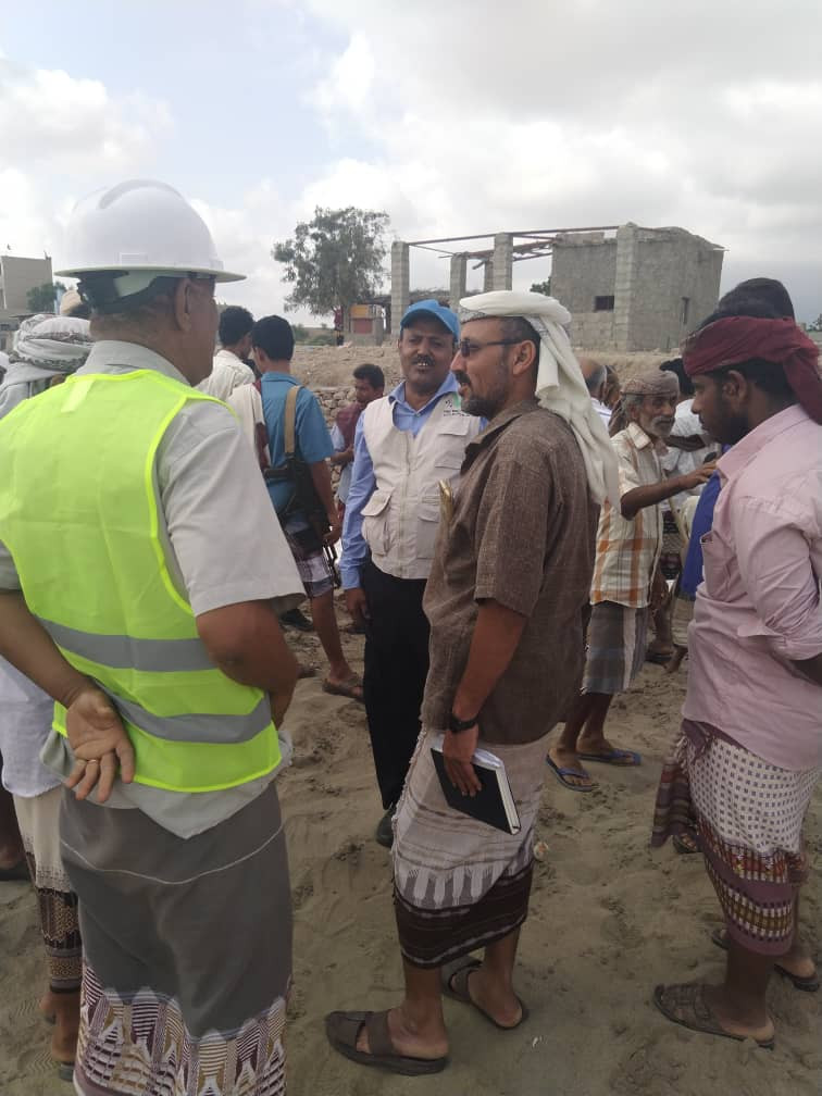 وتأتي هذه الزيارة لتفقد سير العمل في المشروع الطارئي لمنطقة الهفاش باالصميتة حماية القرية من انجرافات السيول.