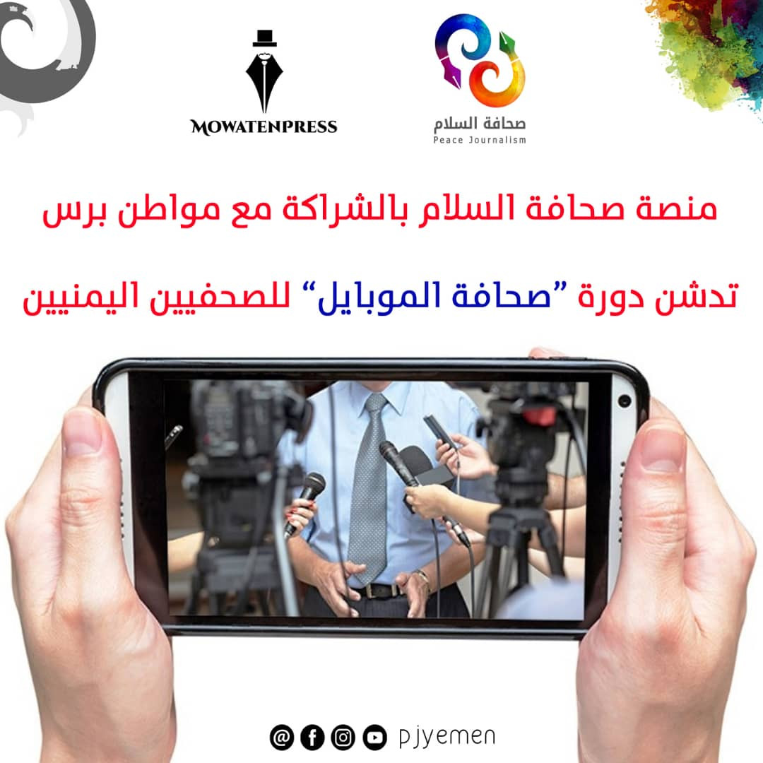 دشنت مساء اليوم الدورة التدريبية الخاصة "بصحافة الموبايل" التي تنظمها "منصة صحافة السلام" بالشراكة مع "مواطن برس" بمشاركة 20 صحفي وصحفية من مختلف محافظات الجمهورية اليمنية.