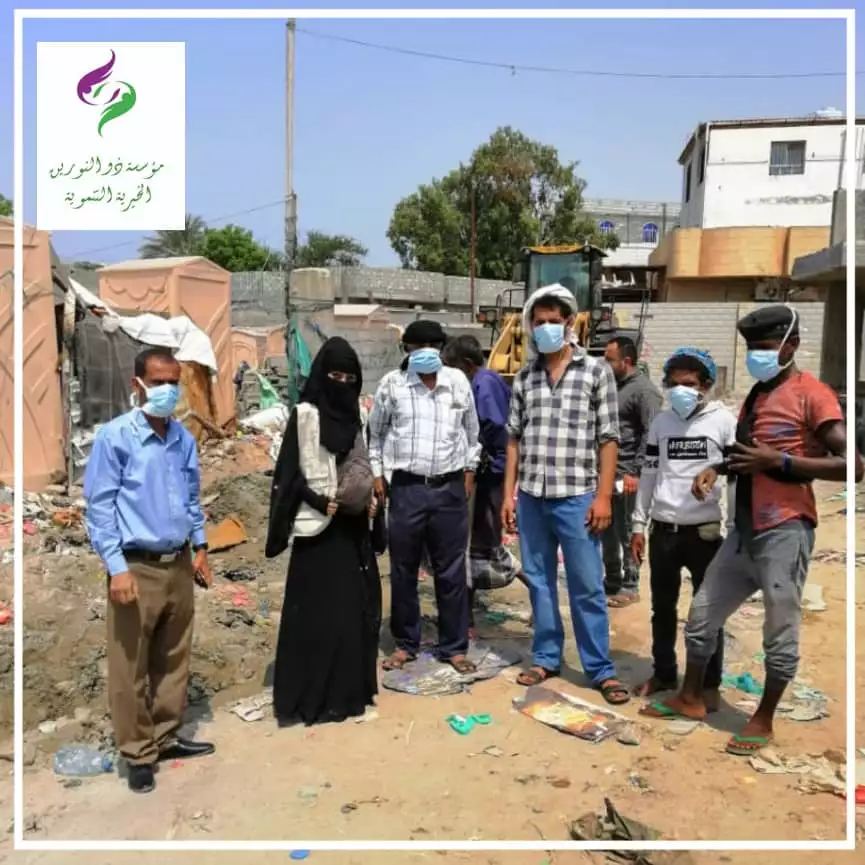 وقامت المؤسسة بالاتفاق مع السلطه المحليه لمديريه خورمكسر ومدير مديرية خور مكسر الاستاذ ناصر الجعدني بإحظار شيول وقلاب قمامة وعمال بلدية لأجل التخلص من تلك الكارثة.