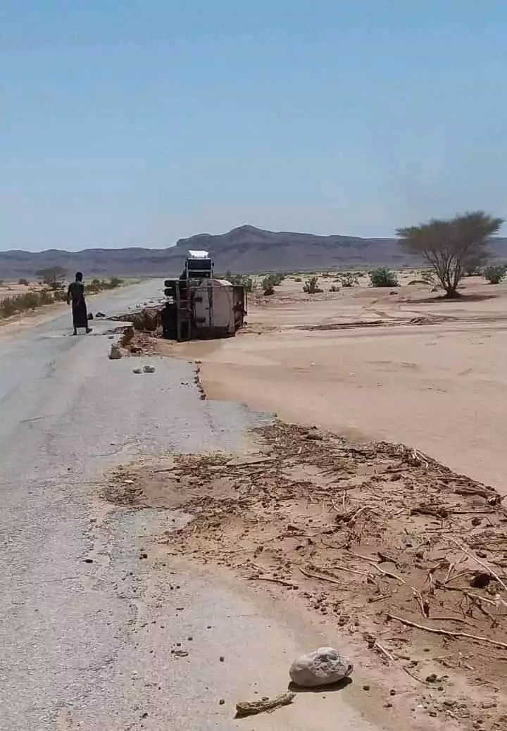 وتضررت عدة طرقات فرعية ودولية الرابط بين العبر وعتق عاصمة المحافظة.