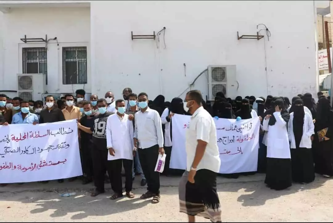 وطالب المحتجون السلطة المحلية في المحافظة بسرعة التدخل ووضع حد لمشكلتهم وتوفير احتياجات الكادر الصحي على وجه السرعة