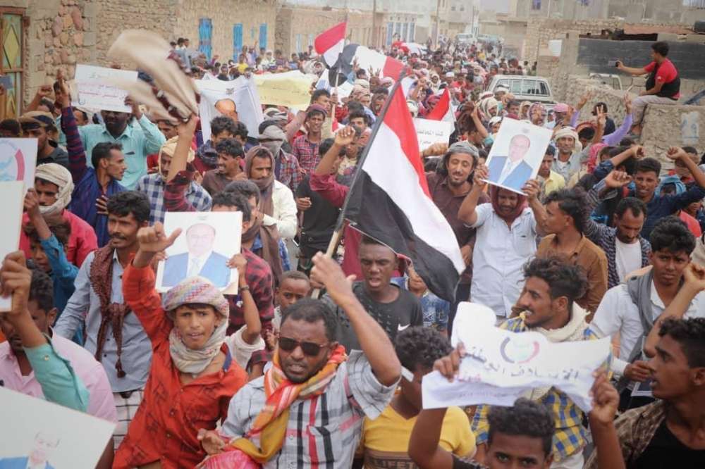 لقد خرج هذا الحشد الكبير ليؤكد من جديد وقوفه خلف القيادة السياسية ممثلة بفخامة المشير عبدربه منصور هادي، وتأييده الكامل للشرعية والجيش الوطني في دحر الانقلاب الحوثي والمليشيات الانقلابية وهزيمة المشروع الإيراني في اليمن، واستعادة الدولة ومؤسساتها، في الوقت الذي يثمن كافة أوجه الدعم والمساندة التي يقدمها تحالف دعم الشرعية بقيادة الاشقاء في المملكة العربية السعودية لمساعدة اليمنيين من استعادة دولتهم وبسط سيطرتها على كامل التراب الوطني.