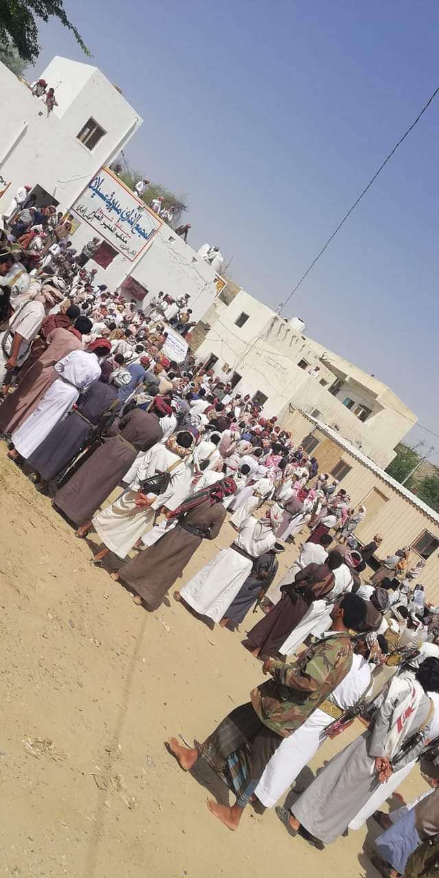 احتشد صباح اليوم الثلاثاء أبناء مديرية بيحان في شبوة رفضا لإحدى قرارات محافظ المحافظة محمد بن عديو.