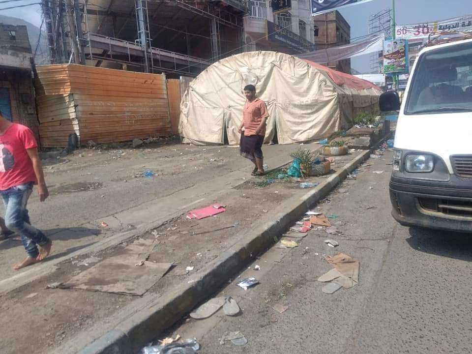 قام طقم عسكري قبل قليل بإزالة " خيمة العرس " المستحدثة في جولة باب موسى بتعز