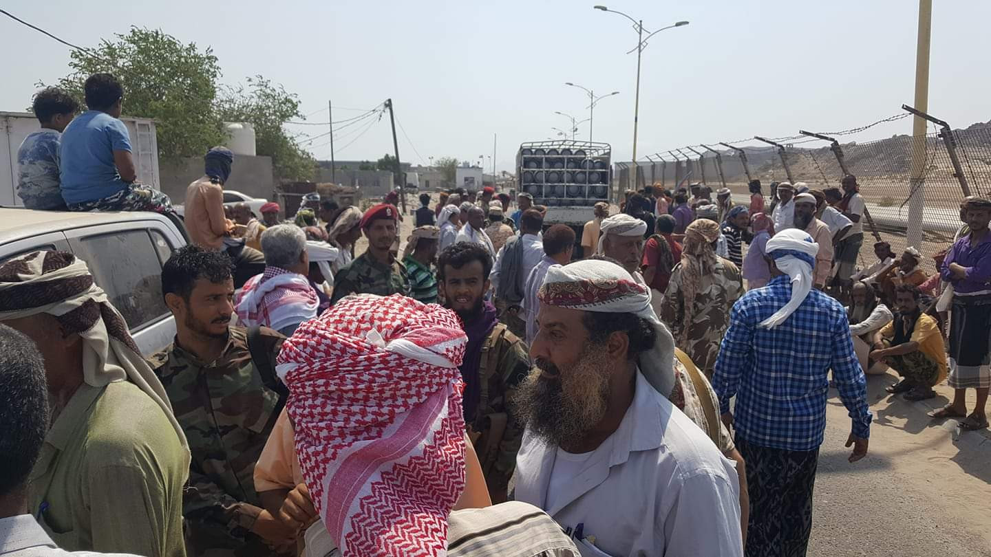 وزحف متظاهرون لاغلاق ميناء الزيت في عدن.