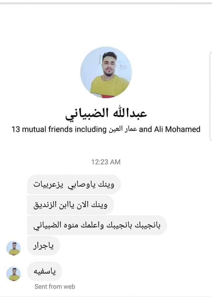 * مرفق لكم صور المنشورات ورسائل التهديدات ونسخة من البيان الصادر ضدي عن مجلس مقاومة بني ظبيان