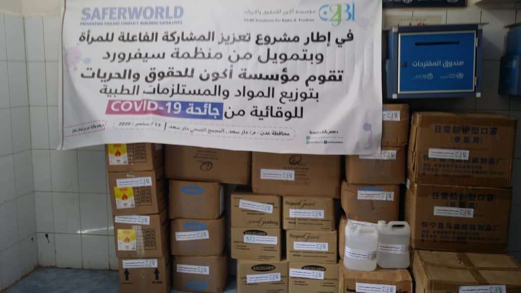 دشنت صباح اليوم مؤسسه أكون للحقوق والحريات في المجمع الصحي بمديرية دارسعد محافظة عدن توزيع المواد والمستلزمات الطبية للوقائية من جائحة "19CoviD " "وذلك بحضور الدكتور / ثروت إسحاق مدير مكتب الصحة ، والمدير التنفيذي لمؤسسة أكون ليلى الشبيبي ، أ/ زيد الشامي مدير مكتب الشؤون الاجتماعية ، د / هناء محمد يحيى مديرة مجمع دار سعد .