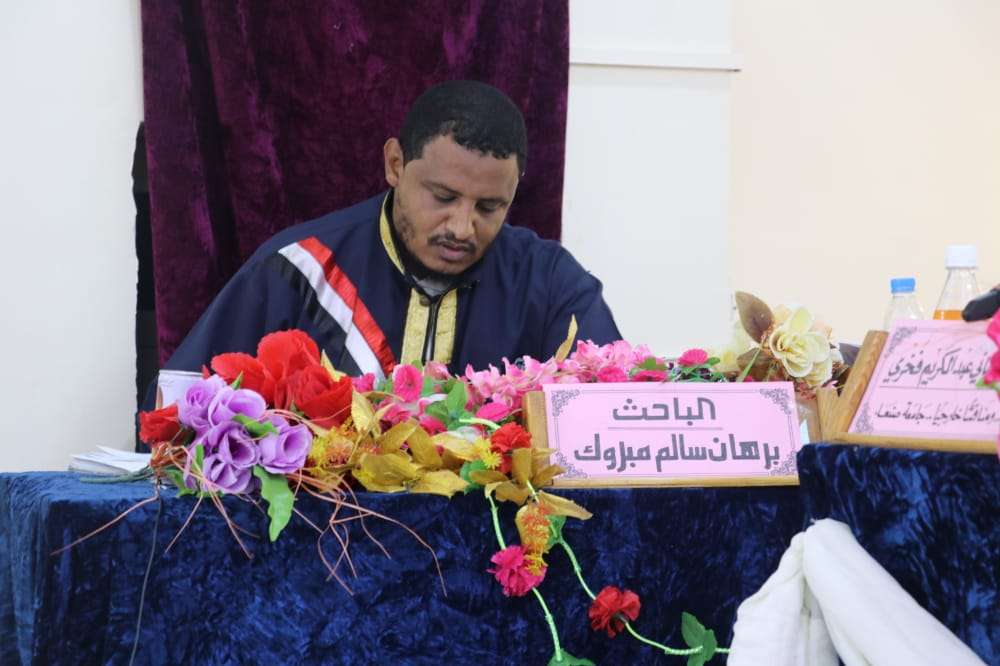 تقدم العميد ابومشعل الكازمي مدير امن محافظة ابين بأحر التهاني والتبريكات وبمشاعر يملؤها الفرح والسرور للاخ العزيز الدكتور " برهان سالم مبروك ناصر " بمناسبة حصوله على شهادة الدكتواره بامتياز مع مرتبة الشرف في قسم اللغة العربية و آدابها بكلية الاداب من جامعة عدن و الموسومة بعنوان "البحث الدلالي عند مفسري الصحابة من خلال كتب التفسير بالمأثور والقراءات".