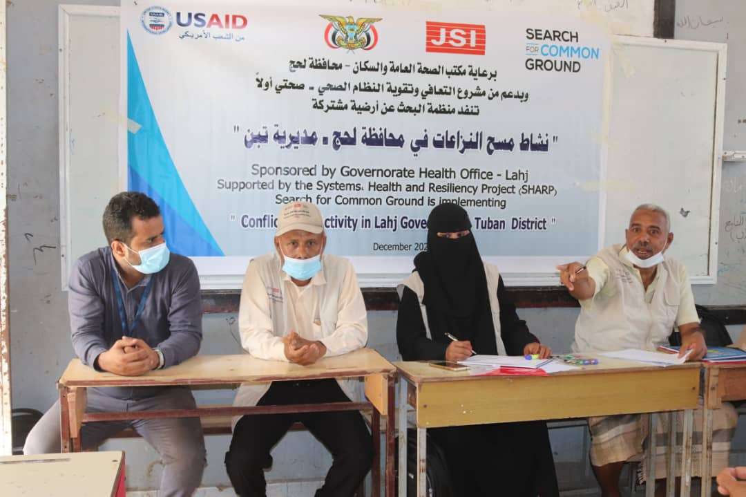 برعاية مكتب الصحة العامة في محافظة لحج وبدعم من مشروع التعافي وتقوية النظام الصحي " صحتي أولا" نفذت منظمة البحث عن أرضية مشتركة صباح اليوم الثلاثاء نشاط مسح النزاعات في مديرية تبن .