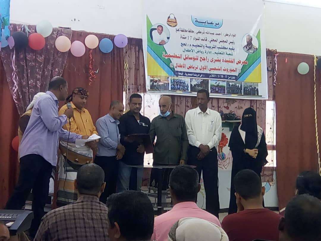 أقامت إدارة رياض الأطفال بشعبة التعليم بمكتب التربية لحج يومي الأربعاء والخميس الماضيين المعرض الأول للوسائل التعليمية والموروث الشعبي، الذي أُقيم برعاية كريمة من محافظ لحج اللواء أحمد عبد الله التركي، وحضره مدير عام مكتب التربية والتعليم بمحافظة لحج أ.فهمي بجاش ثابت ومدير عام تبن محسن جعفر السقاف وعدد من القيادات التربوية.