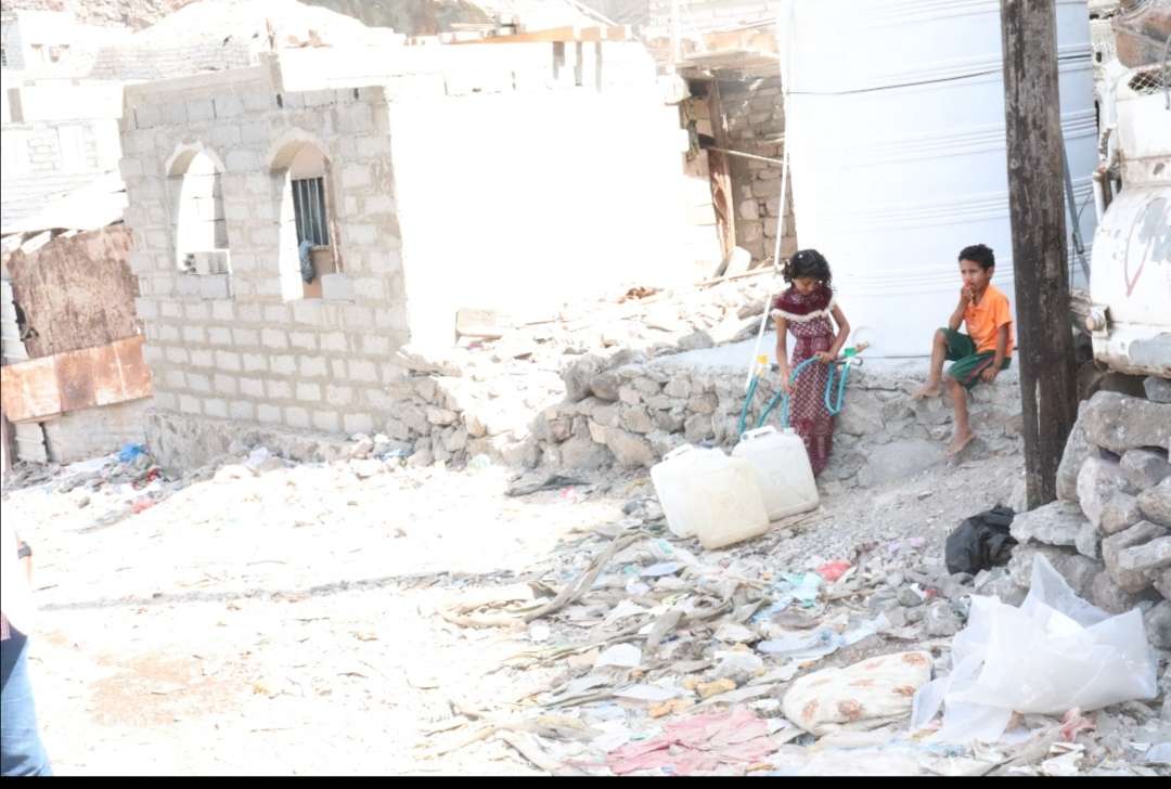 قام صباح اليوم الاستاذ سند أنيس رئيس بعثة منظمة (TGH) يرافقه رئيس اللجان المجتمعية بمديرية المعلا المهندس خالد هاشم ورئيس لجان حي 20 يونيو المحامي حسين الحدي بالإشراف على توزيع مياه الشرب لمناطق المرتفعات الجبلية في مديريتي المعلا والتواهي.
