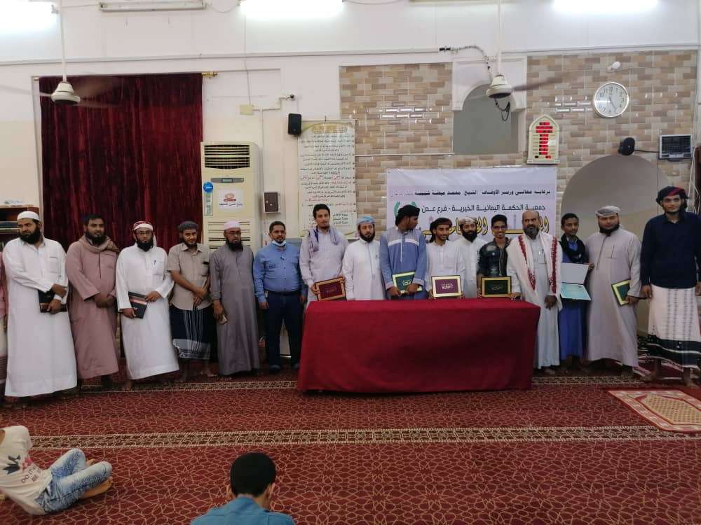 فيما أوضح مدير اللجنة العلمية والتحفيظ في جمعية الحكمة اليمانية الخيرية بعدن، الشيخ محمد مختار، أن المسابقة أقيمت في مسجد الإمام النووي بمنطقة إنماء، في مديرية البريقة، وشارك فيها40 متسابق من محافظات عدن ولحج وأبين.