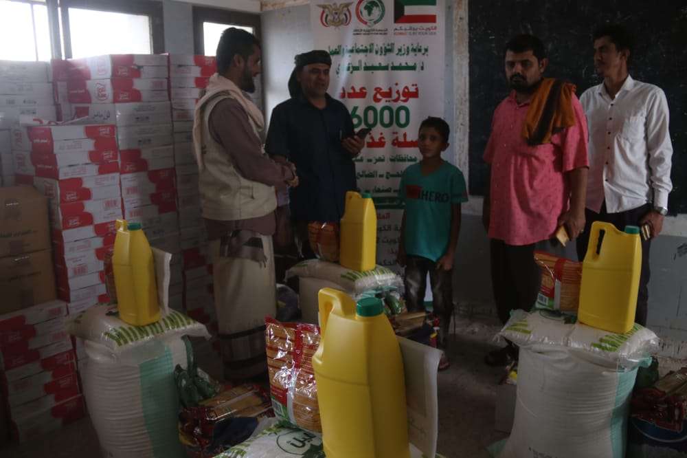يأتي ذلك ضمن حملة توزيع 6 آلاف سلة غذائية من الجمعية الكويتية للإغاثة، على مختلف المحافظات اليمنية.