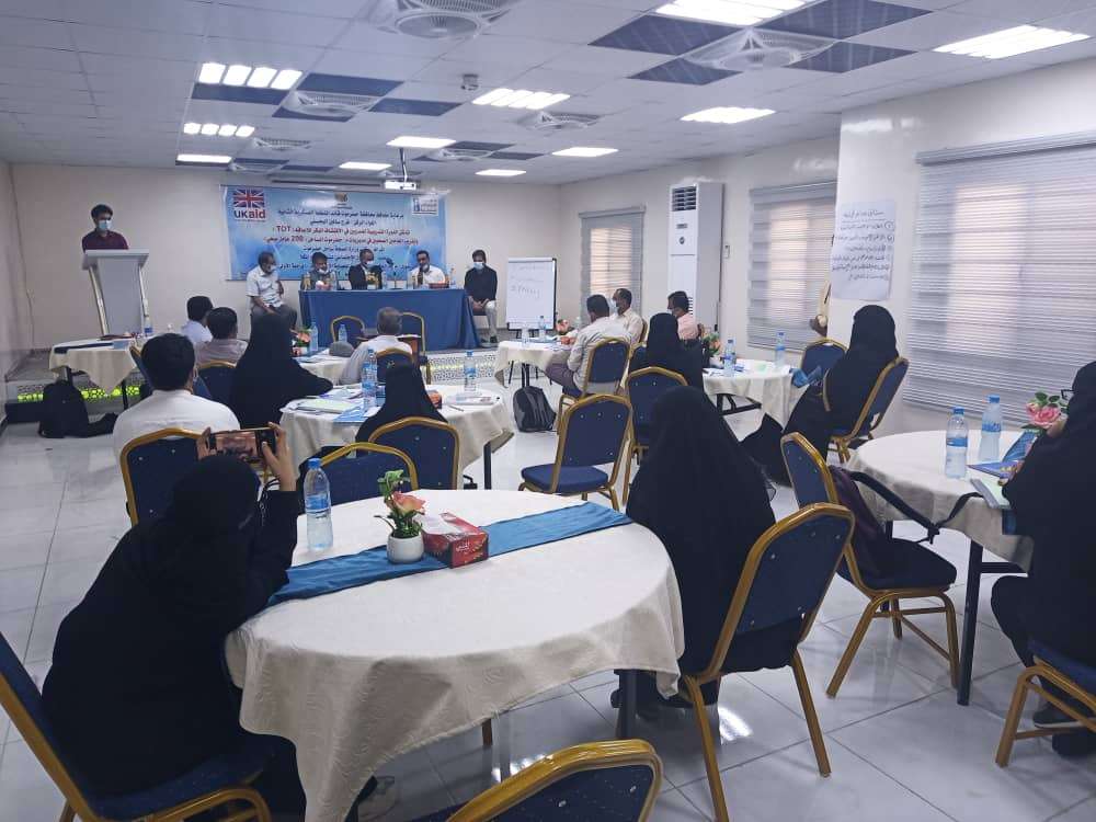 دشنت بقاعة مركز طب الأسرة بجامعة حضرموت فعاليات الدورة التدريبية لتدريب المدربين ( TOY) للعاملين الصحيين بالمرافق الصحية بمديريات حضرموت الساحل حول ‘‘ الاكتشاف المبكر للإعاقة ‘‘ نظمها مكتب وزارة الصحة والسكان بتمويل الصندوق الاجتماعي للتنمية فرع المكلا ضمن منحة الحكومة البريطانية للحماية الإجتماعية تستمر لمدة أسبوع كامل بمشاركة 14 متدرب و متدربه من الأطباء ينفذها كل من المدربين الدكتور / محفوظ رمضان باعوضان والدكتور / هادون علي العطاس.