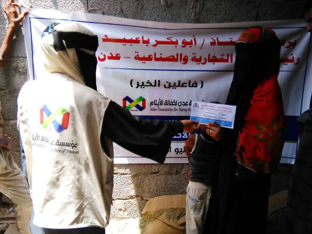 دشنت مؤسسة عدن لكفالة الايتام صباح اليوم الاثنين الموافق يوليو 2021م بالعاصمه عدن مشروع توزيع المساعدات النقدية للايتام والاسر الاشد فقراً في مدينة عدن.