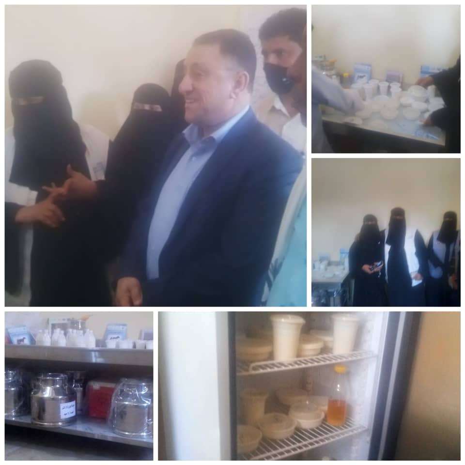 افتتح صباح اليوم الثلاثاء 5 أكتوبر 2021م الأخ / الاستاذ. مهدي محمد الحامد الأمين العام للمجلس المحلي بمحافظة أبين بمقر جمعية التلاحم النسوية الاجتماعية بمنطقة عمودية مديدية زنجبار عملية انتاج الحليب ومشتقاته من الألبان والاجبان والزيادي والحقين وكذا السمن البلدي لمجموعتي باشحارة وعمودية النسوية حيث كان في استقباله الاخت هدئ العوش رئيسة جمعية التلاحم النسوية الاجتماعية بعمودية التي اوضحت للاخ / مهدي الحامد الامين العام للمجلس المحلي بالمحافظة مراحل هذا المشروع المختلفة حيث يأتي هذا المشروع بدعم من منظمة الفاو وتنفيذ مؤسسة خطوات للتنمية المدنية ضمن مشروع الصمود الريفي 2 من خلال تدريب مربيات الابقار والمواشي في كيفية عملية تسمين وتربية الحيوانات وتوفير المكعبات التغذوية ومادة المومس ، وتدريب المجموعات النسوية بباشحارة عمودية في كيفية صناعة وإنتاج الحليب ومشتقاته بصورة علمية وأكثر جودة وفي المرحلة الحالية تم توفير ادوات صناعة مشتقات الحليب في مراحلة المختلفة بادوات حديثة وصحية واحجام مختلفة بعدد من الدلال وللتخفيف من تكاليف الانتاج حيث تم توفير القناني والادوات البلاستيجية لحفظ الاجبان ووالزبادي والحقين وتسهيل عملية تسويقها وتم تسليم المشروع ثلاجتي فريزر احداهما تعمل بالطاقة الشمسية..