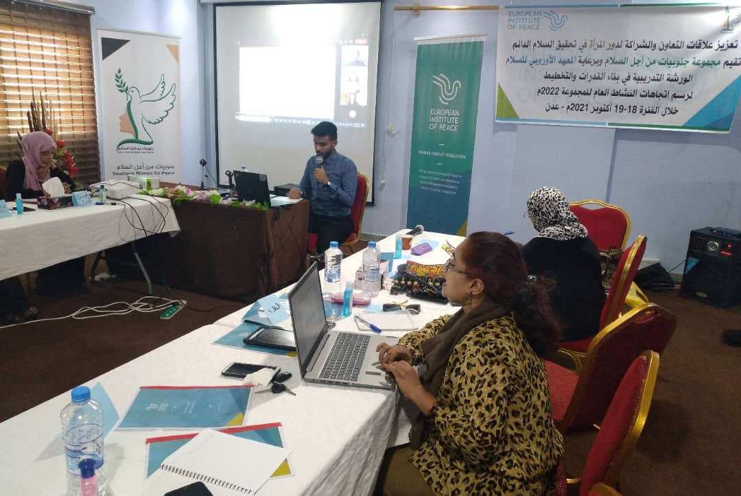 أقامت مجموعة "جنوبيات من أجل السلام، في مدينة عدن، اليوم الاثنين، وبرعاية المعهد الأوروبي للسلام، ورشة تدريبية في بناء القدرات والتخطيط؛ لرسم اتجاهات النشاط العام للمجموعة لسنة 2020.